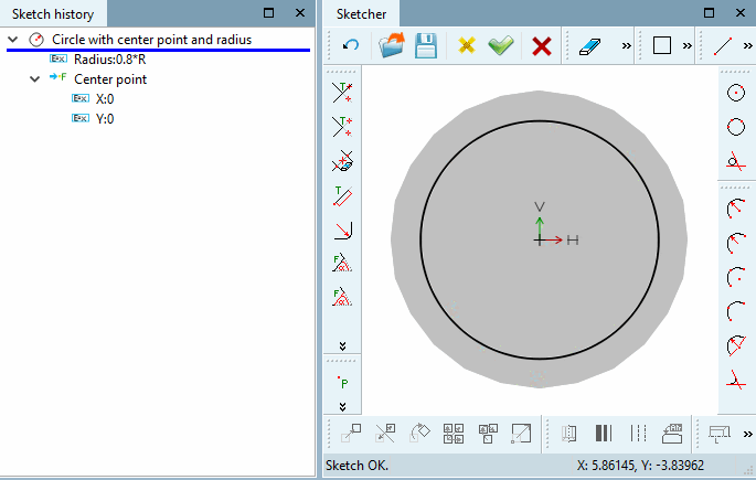 Confirm the current sketch by clicking on Apply changes [Accept changes]