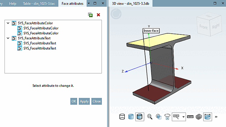 Initial situation: On the selected face, two attributes are already set.