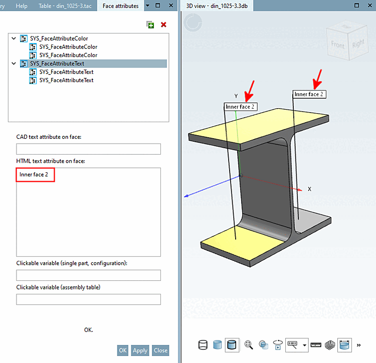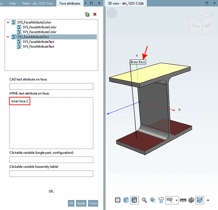 Now the already assigned text attribute shall be modified and at the same time a new instance be set on another face.