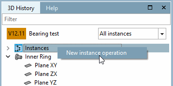 4. Right-click on instances [Instances] or on the name of a solid to create an instance via New instance operation. The default position for each newly added solid (so that you immediately get a visual representation of the solid) is a single instance without rotation in the center of the component.