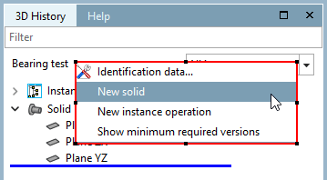 Right-click on the name "Solid 1" to open the context menu. There you have various options, such as Rename, New instance operation, Set material, Insert absolute layer... [Insert Fixed plane...] or Delete.