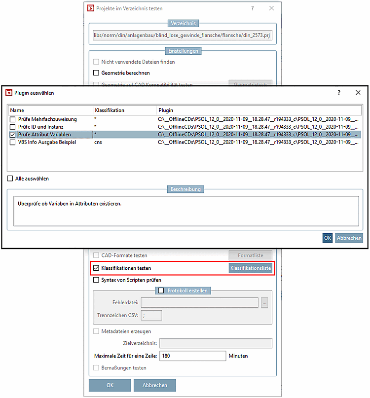 Use case for the "Check attribute variables" plugin: When re-editing projects and renaming variables (e.g. order number variables), the variable mapping is sometimes forgotten to be adapted to the classification.
