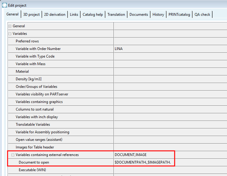 Create the corresponding variables in PARTproject under Variables with executable program [Variables containing external references] or Document to open.