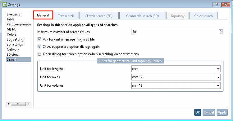 When searching via [Open dialog for search options when searching via context menu] the context menu, open the dialog for the search settings:
