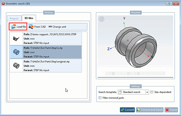 In the Geometric search (3D [Geometric search (3D)] ) dialog box, click Load file.