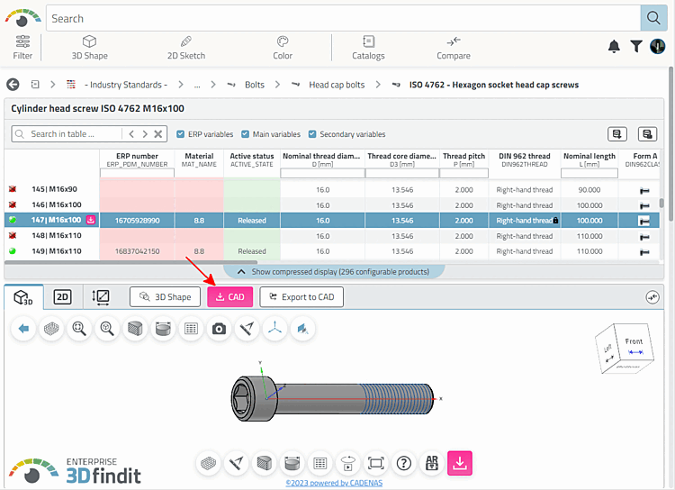 You have the option of downloading the specified component in the desired CAD format.