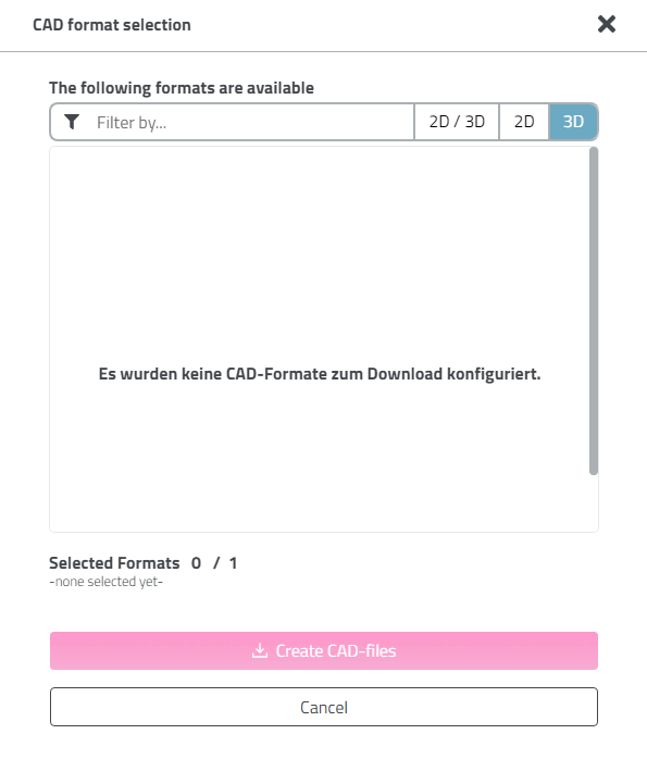 Before 2D/3D CAD formats can be downloaded, they must be administratively declared.