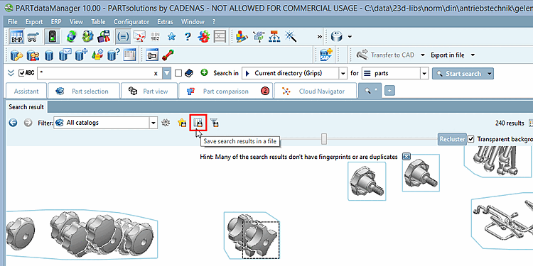 Example: All handles of the set directory are displayed in the Cloud Map.