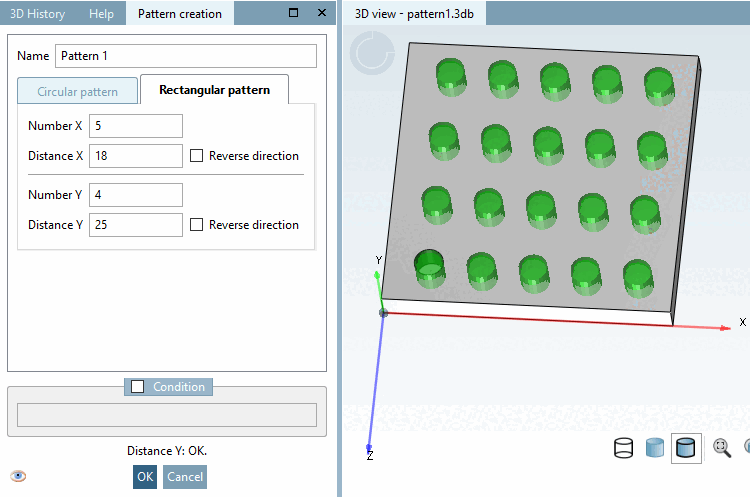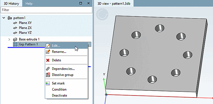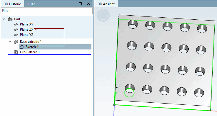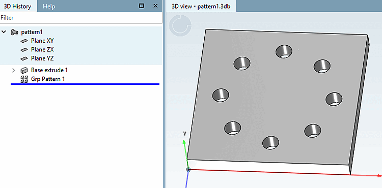 -> The rectangular pattern is displayed in the 3D history [3D History] under Grp Pattern.