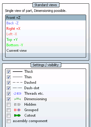 The front [Front], rear [Back], right [Right], left [Left], top [Top] and bottom [Bottom] views are independent of the settings in the 3D view.