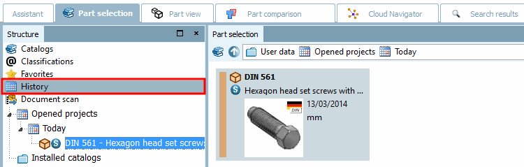 [8] The display of the history can be switched on and off via the configuration file. See Section 1.7.4.7.2.9, “ Key "ShowInstallHistory" - Switch change history of installation history on/off ” in ENTERPRISE 3Dfindit (Professional) - Administration.