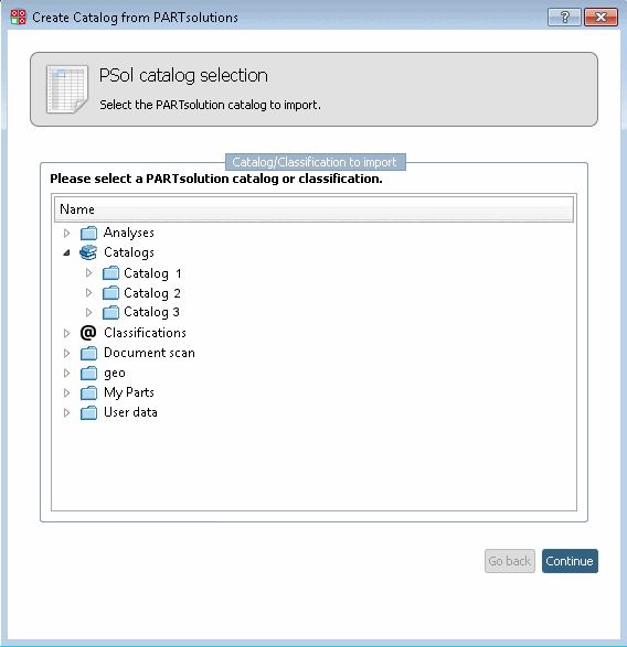 In the context menu of catalogs [Catalogs], click on the menu item Import catalog -> Import from PARTsolutions.