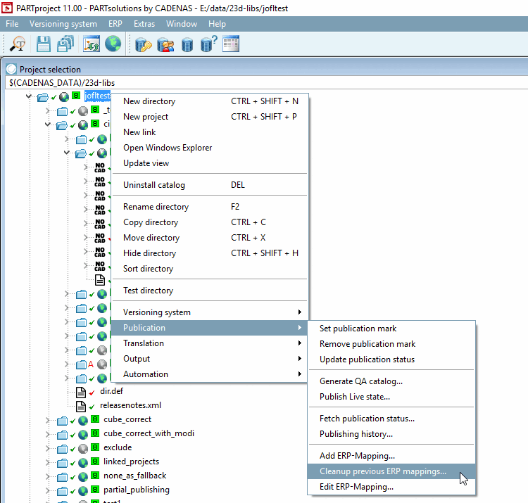 ERP mappings that are no longer required can be removed from the current work status (saved in ) using the command Clean up ERP mappings for older versions [Cleanup previous ERP mappings...]... command to remove them from the current work status (saved in mapping.json).