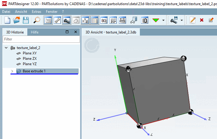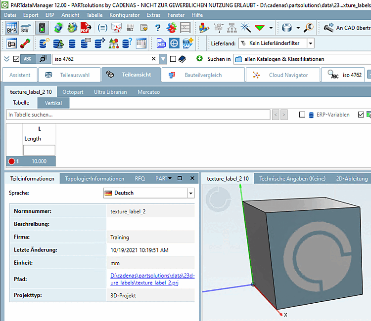 Define the desired texture labels [Texture label] in PARTproject under Manage render materials [Maintain render materials] (for details see Section 5.9.2.8, “Menu item: Render properties ” ).