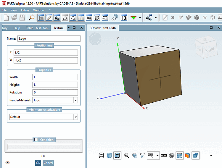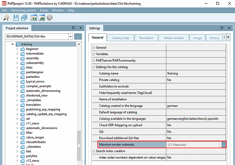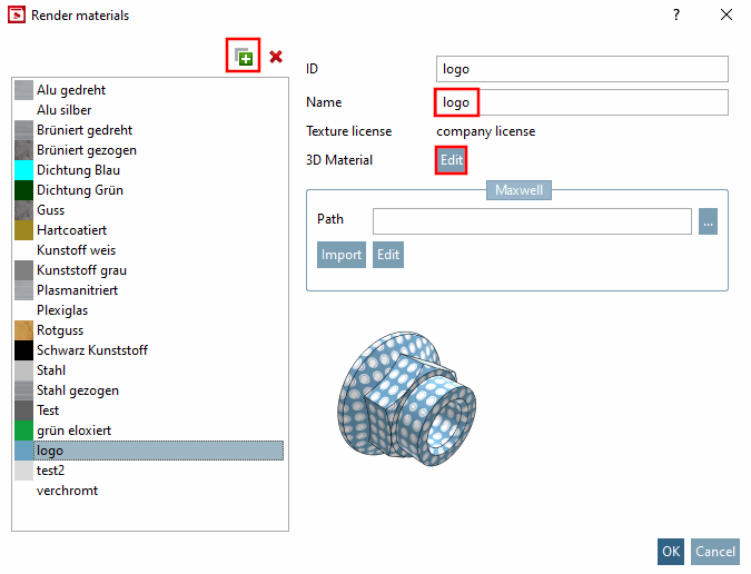 Materials created in this way are later available for assignment in the PARTdesigner later on.