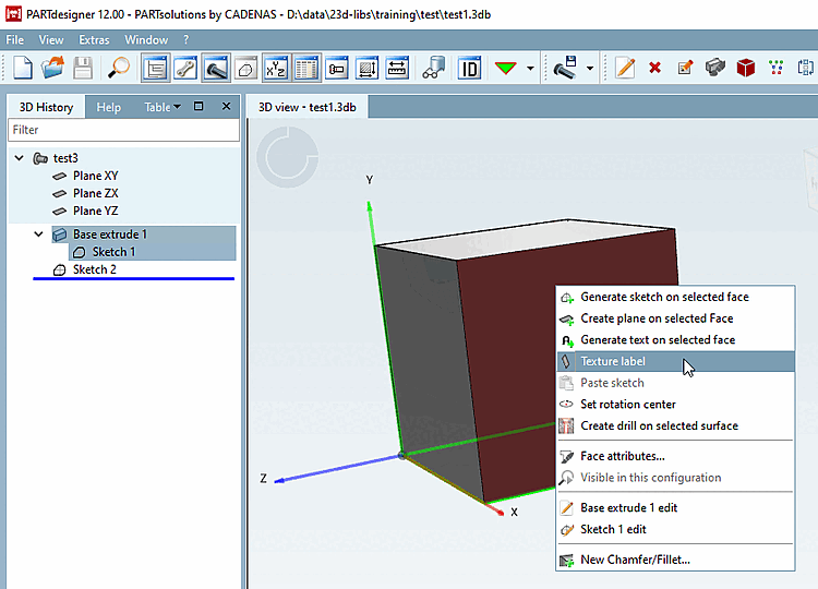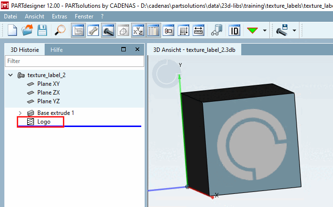 Create the render material beforehand and activate the Texture Label [Texture label] checkbox (see Fig. Fig. „ "Edit material for 3D preview [Edit material for 3D preview]" dialog“).