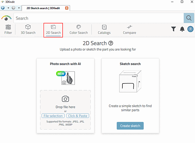 By clicking on the 2D Search [2D search] button, you have the following selection options: