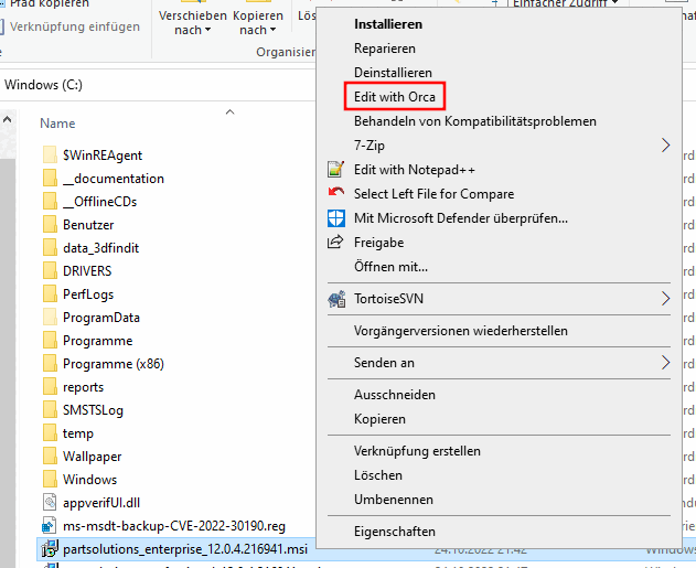 To evaluate the parameters available in the respective package, open the package with Orca. (See https://learn.microsoft.com/de-de/windows/win32/msi/orca-exe. After installing winsdksetup.exe, the packageOrca-x86_en-us.msi must be explicitly installed at C:\Program Files