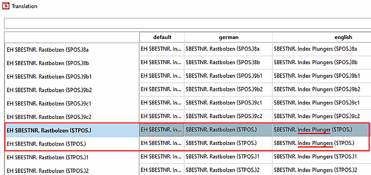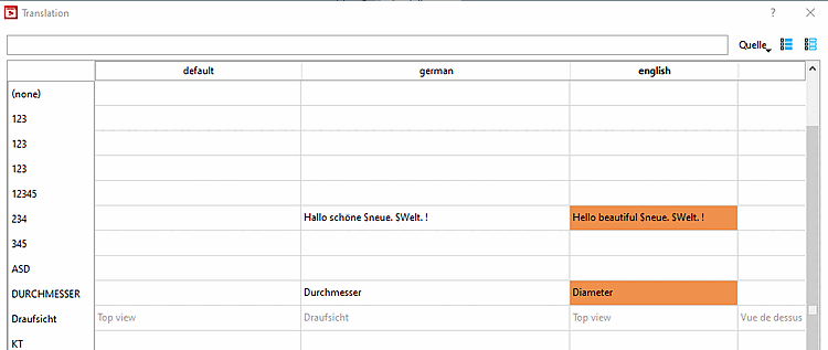 The expressions in grayed-out text are already created/existing translations that are used within other directories and that have been "remembered" PARTproject they are merely suggestions and can either be overwritten or permanently entered using the context menu command Accept suggestion [Accept suggestion] (for a single field) or Accept suggestions [Use suggestions] (for an entire column).