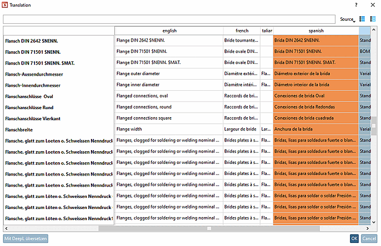 Terms that appear in the glossary are translated accordingly; terms that are not included there are still translated using standard functionality.