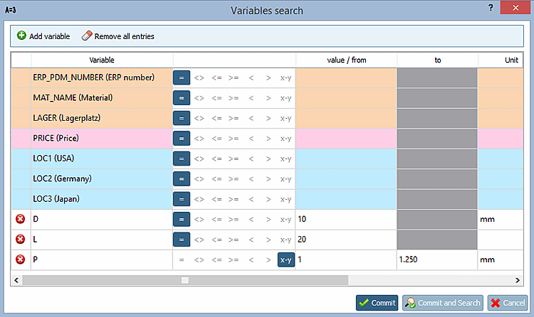 -> The Variable search [Variables search] dialog box opens.