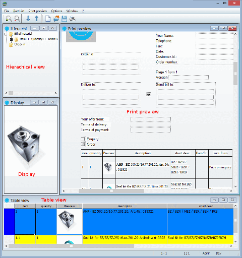 The PARTbom interface is divided into four areas.