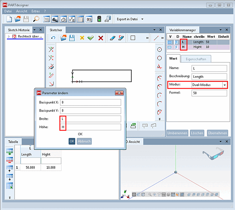 If you have created a variable with the storage location [Save location] "Only in table [Only in table] " (storage in the tab/tac file) and want to use it in Sketcher, the error message Unknown variable appears.