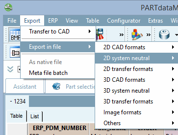 The following 2D CAD formats and 2D system-neutral [2D system neutral] formats are available for export without the 3Dfindit interface: