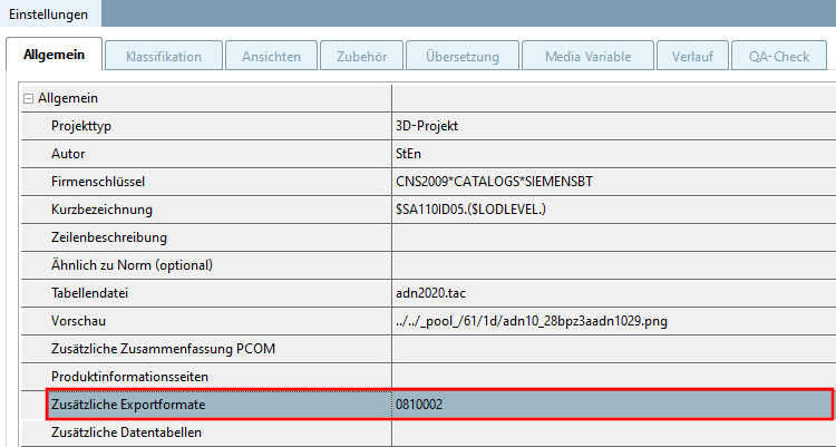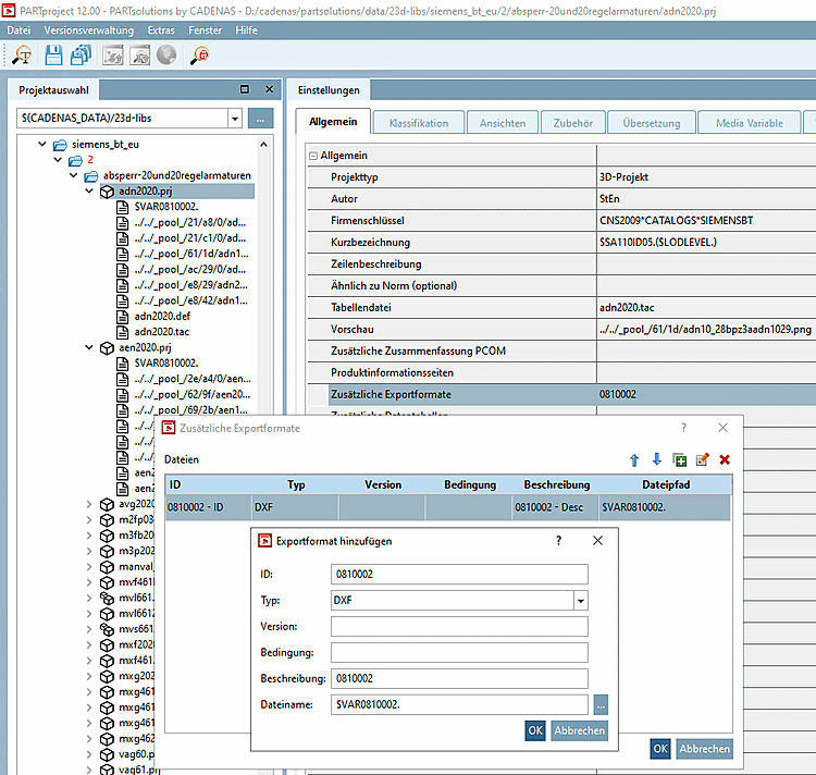 Select the project to which you want to assign a certain symbol as additional export format. (In this example "c2fvvi412020.prj")