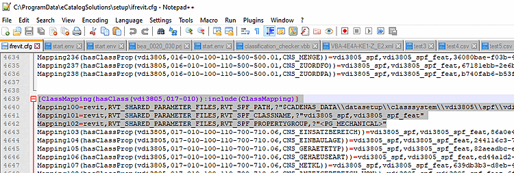 [ClassMapping(hasClass(vdi3805,017-010)):include(ClassMapping)] Mapping100=revit,RVT_SHARED_PARAMETER_FILES,RVT_SPF_PATH,?"$CADENAS_DATA\\datasetup\\classsystem\\vdi3805\\spf\\vdi3805_017_$CADENAS_LANGUAGE.txt" Mapping101=revit,RVT_SHARED_PARAMETER_FILES,RVT_SPF_CLASSNAME,?"vdi3805_spf,vdi3805_spf_feat" Mapping102=revit,RVT_SHARED_PARAMETER_FILES,RVT_SPF_PROPERTYGROUP,?"<PG_MECHANICAL>"