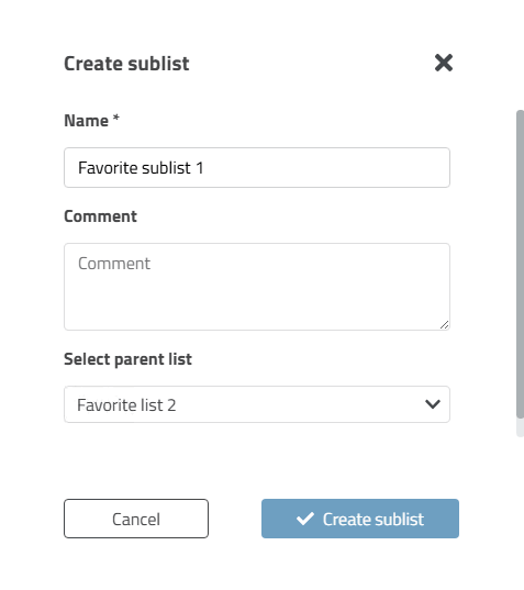 -> The Create sublist dialog box opens.