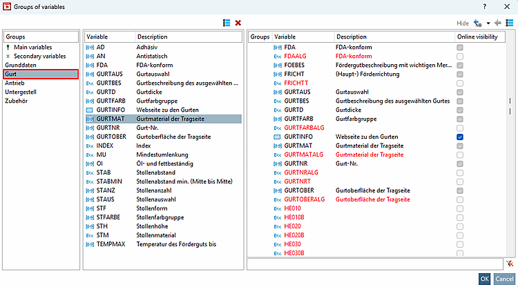 Details on variable groups [Groups of variables] can be found at Section 5.9.2.3.3, “ Variable groups - columns (variables) visible / hidden ”.
