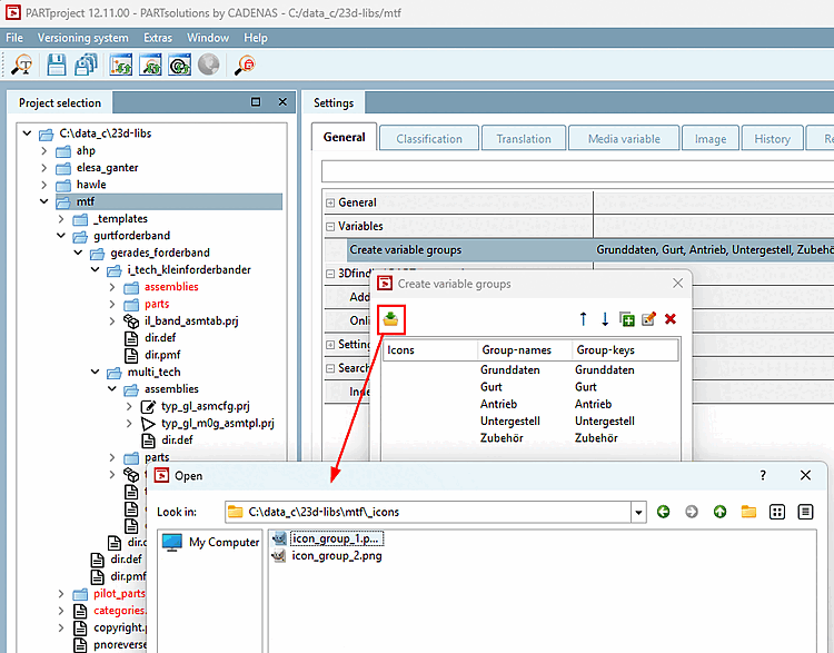 group membership.Select the desired icon in the Explorer. The icon must be in the catalog root directory, in the "_icons" directory and must not exceed a maximum size of 16 px x 16 px, otherwise an error message will appear.