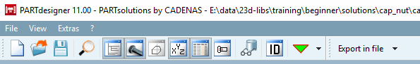 Below the menu bar you will find the standard toolbar and the export toolbar with the following buttons: