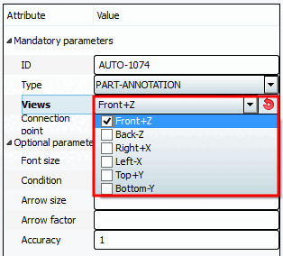 HORIZONTAL appears automatically when you create a new dimensioning. Adjust the selection in the list field to PART NOTATION [PART-ANNOTATION]. You can change the type at any time.