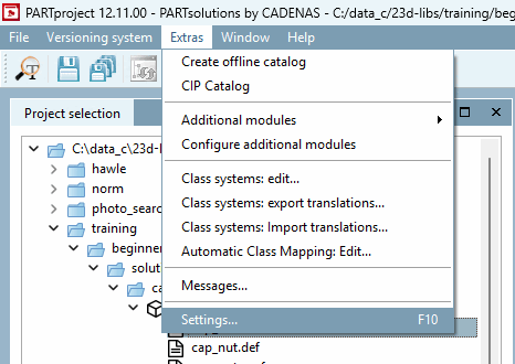 In PARTproject, in the Extras menu [Extras], click on the context menu command Settings.... [Preferences...]