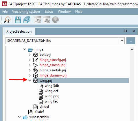 This command calls up the module PARTproject module and immediately calls up the currently selected component.