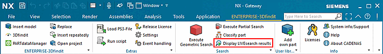 When LIVEsearch is activated, the model is scanned on the fly in the background during the modeling of an individual part and geometrically similar parts are filtered from the set search area and displayed in the LIVEsearch pop-up window[24]