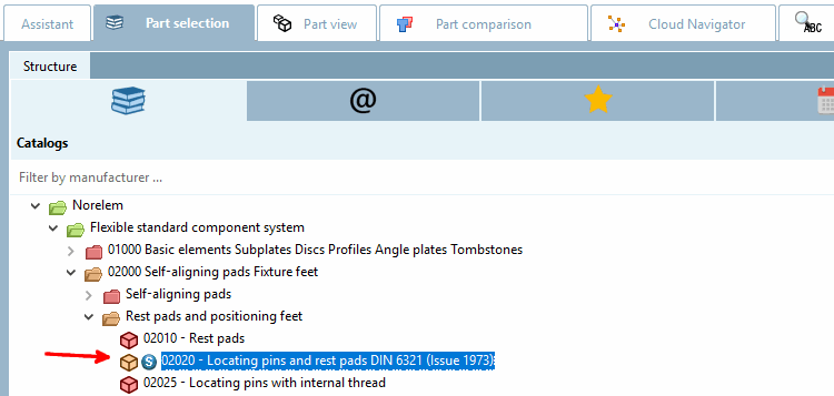 If a new release CIP is generated via PARTproject a new release CIP is generated, this process automatically searches the catalog for standardized parts. All NNs and NTs are scanned to see whether they contain one of the following "key terms" PLUS a number (e.g. DIN 123). If this is the case, the project is automatically
