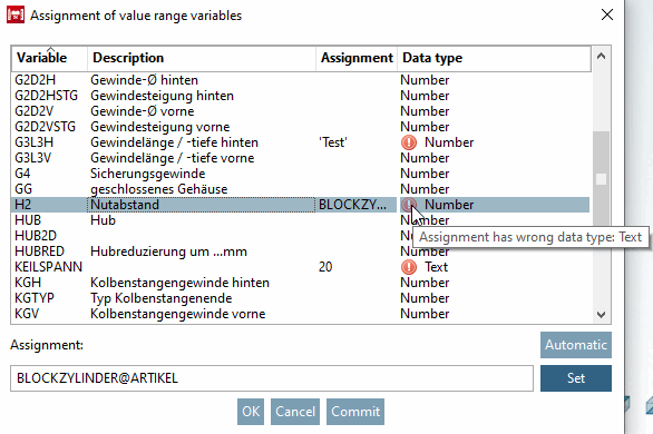 When mapping value range variables on another, up to now there was no check if the data types of the two variables are corresponding.