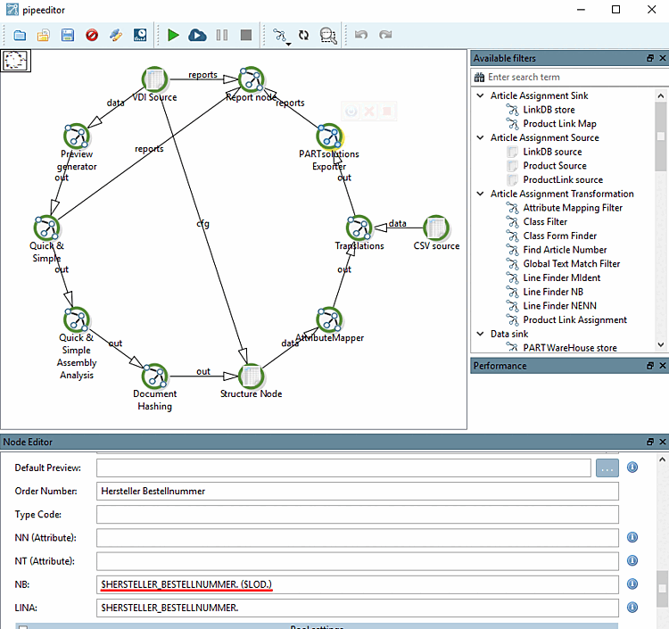 LINA (parts list designation): Default value is "$HERSTELLER_BESTELLNUMMER."