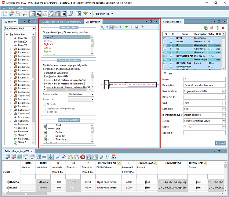 To display a solid from the 3D view in 2D mode or to create a 2D derivation of it, you must select the 2D derivation command. Either via the toolbar