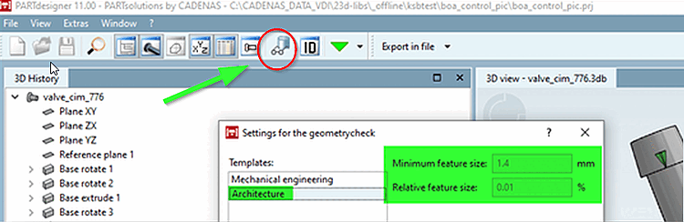 Sketches with a simple structure, referenced and parameterized on levels and the immediate checking of the generated geometry with the PARTdesigner Geometry checker ( Check part [Test part] function) in the correct setting is the elementary basis for an easy-to-read data structure that can be maintained in a short space of time.