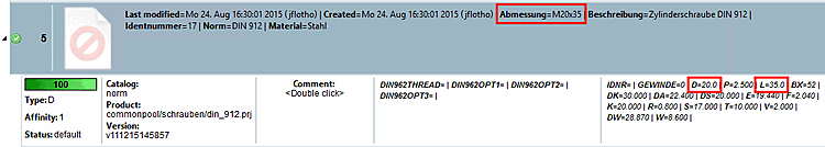 Proceed exactly as before and drag the CSV line over the project DIN 913 via drag & drop.