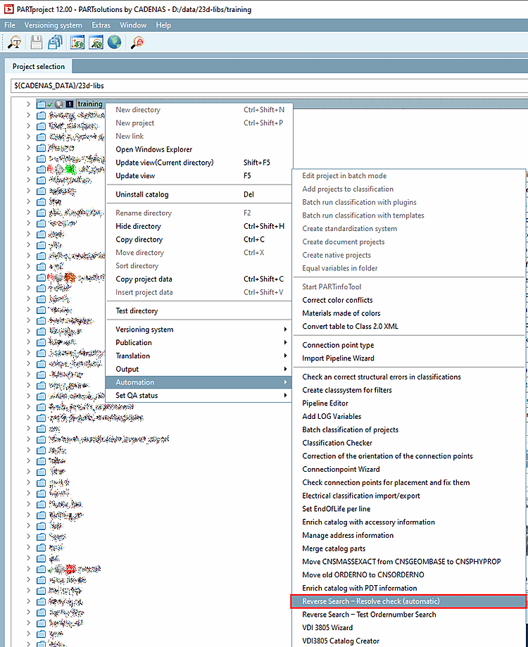 Right-click on a catalog or directory -> Automation -> Resolution check [Resolve check]