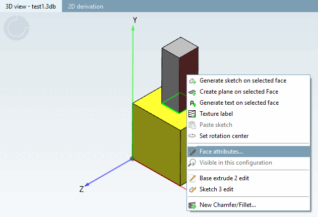 Feature color: Feature colors are set to entire features in PARTdesigner (e.g. an extrude). All areas created by this feature are then colored. See Section 7.6.8.7, “ Feature attributes... ”