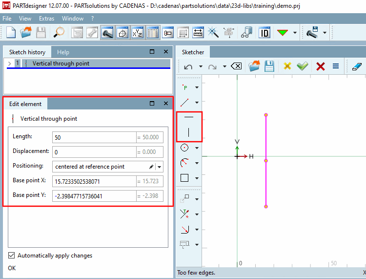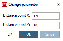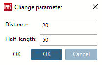 If necessary, adjust the distance [Distance] and the half-length [Half-length] (initially displaying the default value 50) in the Edit element docking window or in the Change parameters [Change parameter] dialog box.