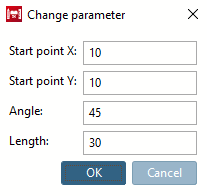 If necessary, adjust the starting point [Start point], angle [Angle] and length [Length] in the Edit element docking window or in the Change parameters [Change parameter] dialog box.