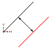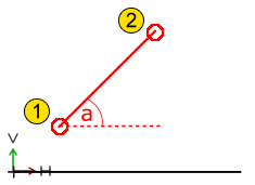 Line at angle to horizontal, length