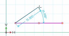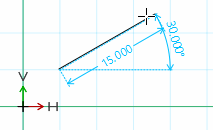 If necessary, adjust the exact angle [Angle] and length [Length] in the Edit element docking window or in the Change parameters [Change parameter] dialog box.